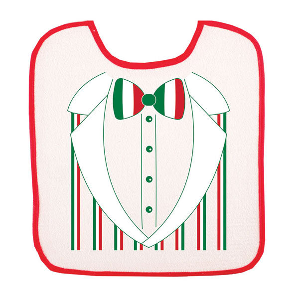 Unit price perDress your little one in style with our charming baby bib featuring a tuxedo top and bowtie graphic in the vibrant colors of the Italian flag. Perfect for special occasions, this bib combines elegance with practicality, ensuring your baby stays clean while looking dapper.