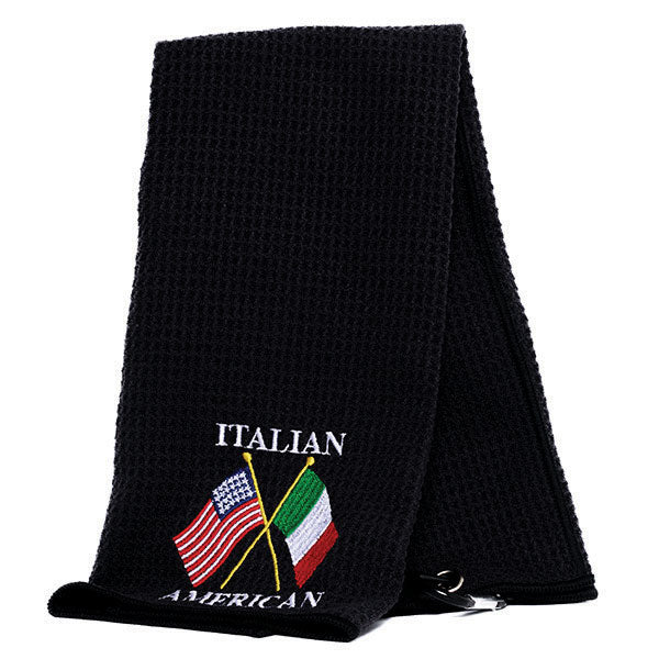GT22002 - Golf Towel W/Italy & American Flag Embroidered 16" x 25" (Black)